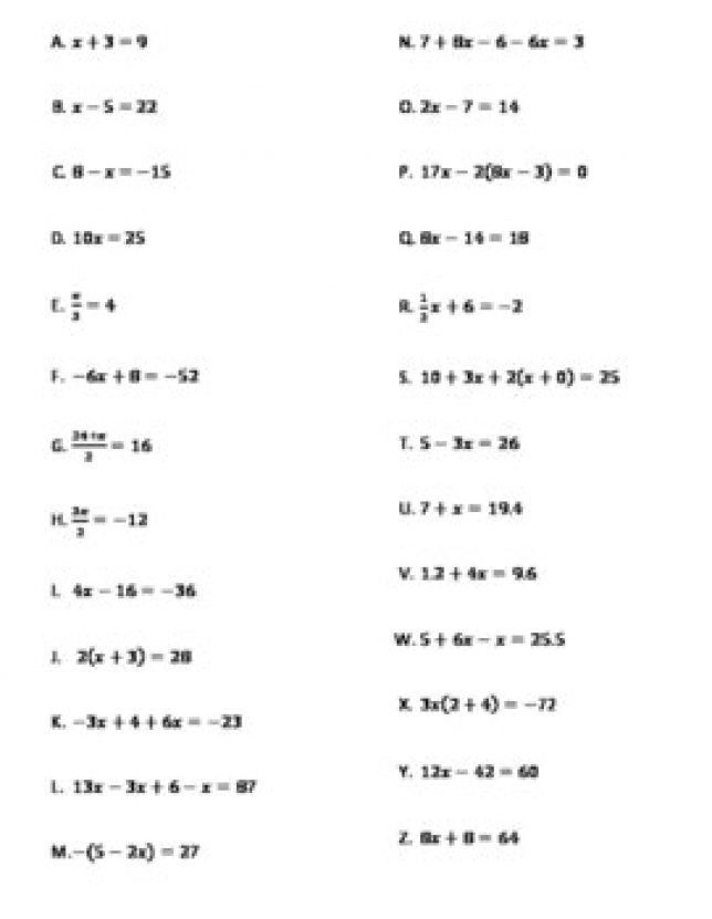 Two-step equations worksheets typically include a mix of addition, subtraction, multiplication, and division problems. Students are required to perform the necessary operations in the correct order to isolate the variable and find the solution. These worksheets can vary in difficulty, allowing students to progress from simple equations to more complex ones as they build their skills.