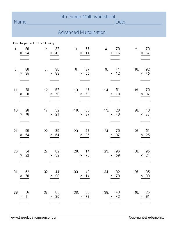 Free Fifth Grade Multiplication Worksheet Download Free Fifth Grade (worksheets.clipart-library.com)