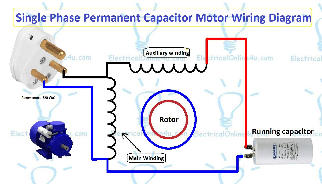 Single Phase Motor Capacitor Start Capacitor Run Wiring DiagramSingle Phase Motor Capacitor Start Capacitor Run Wiring Diagram (www.electricalonline4u.com)