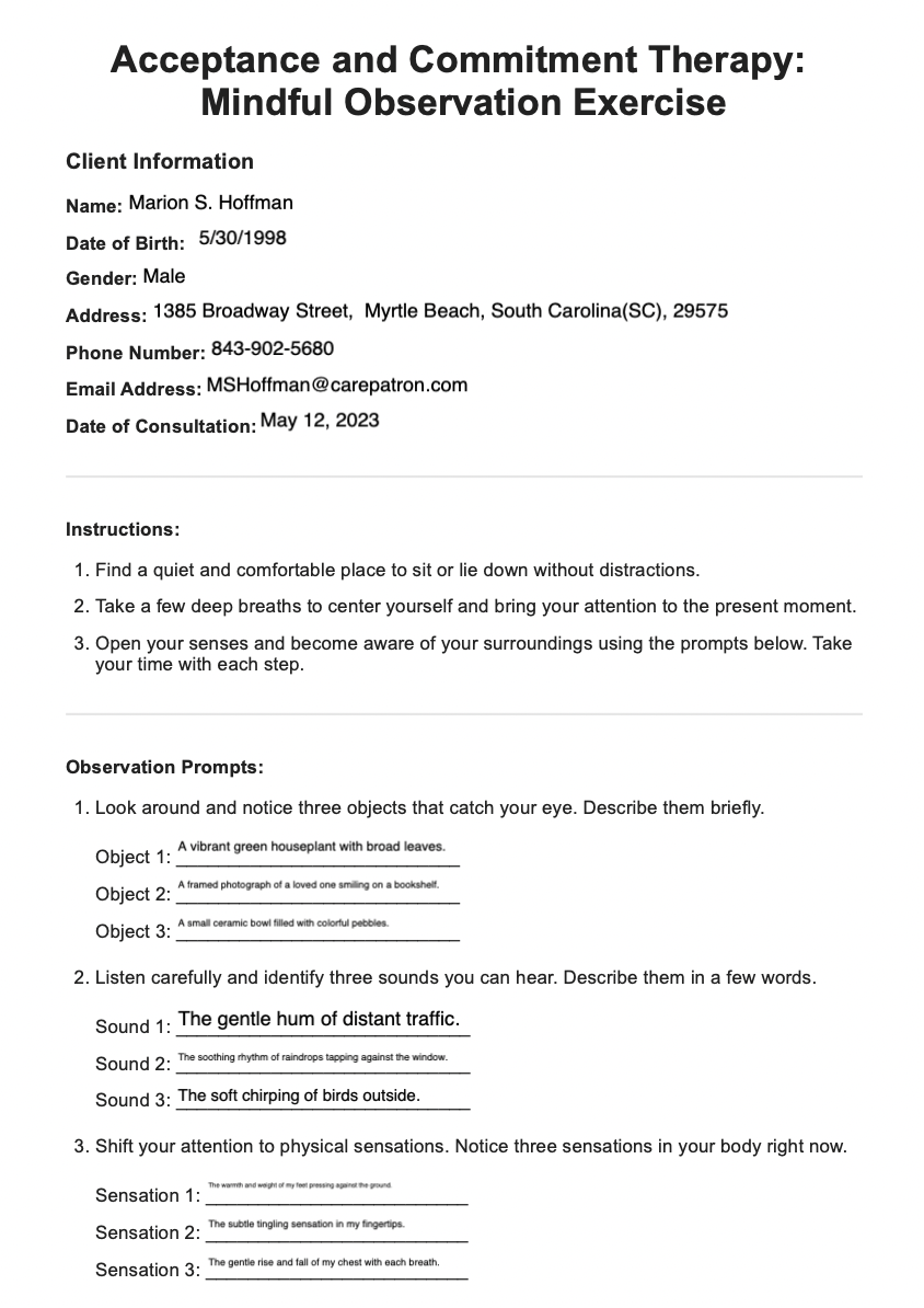 ACT therapy worksheets can also focus on mindfulness exercises, such as the Mindful Breathing Worksheet, which guides individuals through techniques to increase awareness of the present moment and cultivate a sense of calm and focus. These exercises can help individuals manage stress, anxiety, and other mental health issues more effectively.