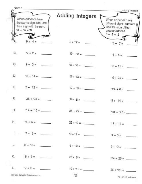 Adding Integers Subtracting Integers Worksheet Mrs Johnson (www.yumpu.com)