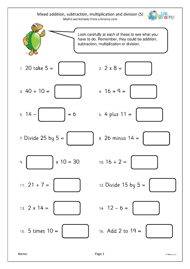 Division Multiplication Addition Subtraction Worksheets