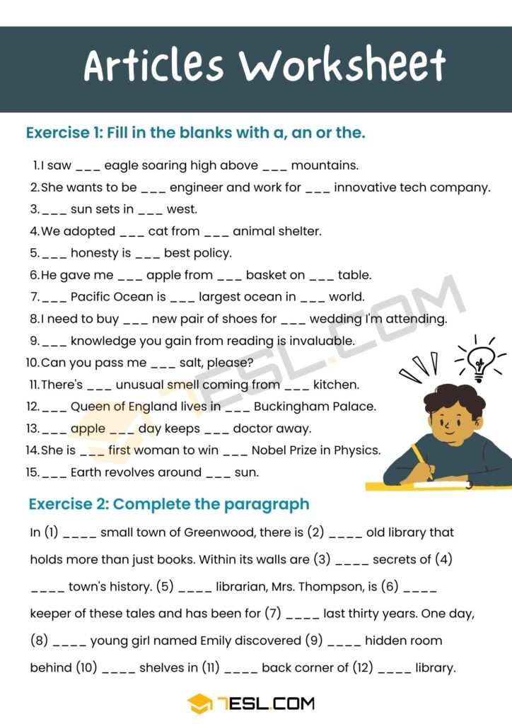 Are you looking for a fun and engaging way to help your Class 1 students improve their reading and writing skills? Look no further than an article worksheet! Article worksheets are a great resource for teachers to use in the classroom to enhance comprehension and vocabulary.