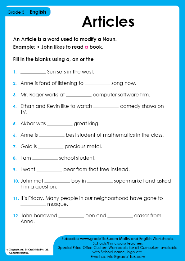 Articles Worksheet Grade 3 Worksheets LibraryArticles Worksheet Grade 3 Worksheets Library