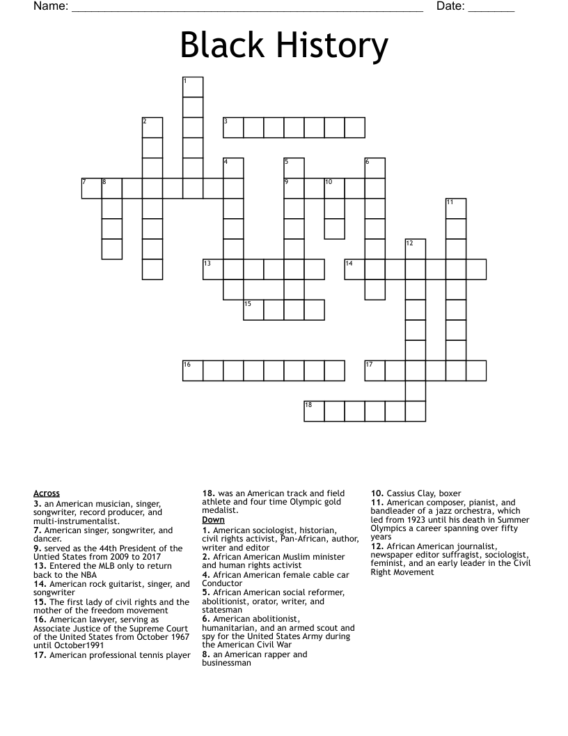 Black History Crossword Puzzle Printable Pdf Printable Templates (printable.esad.edu.br)