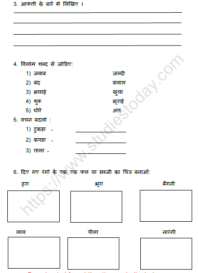 CBSE Class 3 Hindi WorksheetCBSE Class 3 Hindi Worksheet