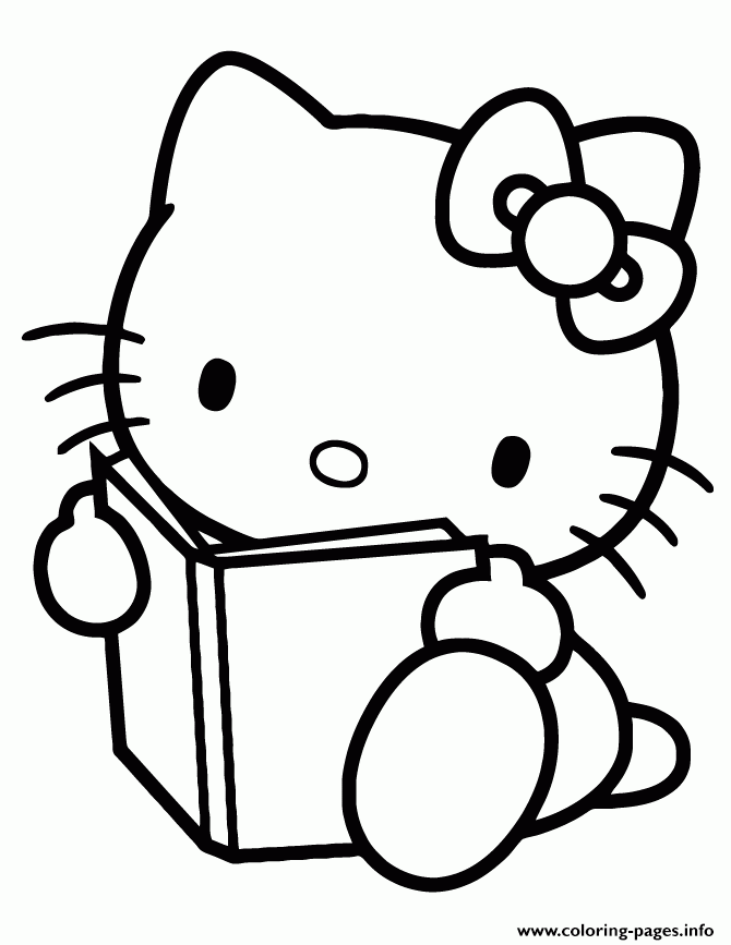 Hello Kitty Reading Book Coloring Page PrintableHello Kitty Reading Book Coloring Page Printable