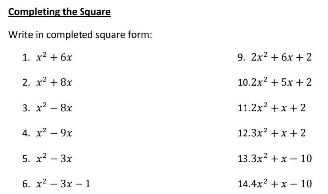 Completing The Square GCSE Maths Steps Examples Worksheets Library (worksheets.clipart-library.com)