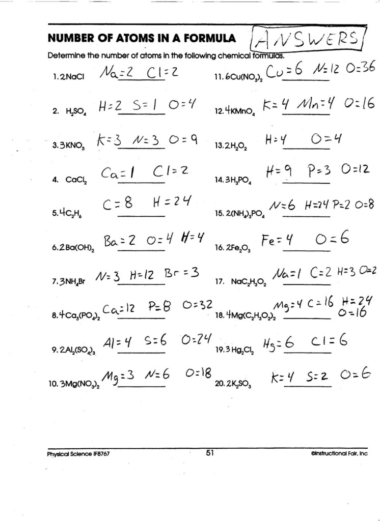 Counting atoms is a fundamental skill in chemistry that allows us to understand the composition of substances and predict how they will interact with each other. One of the most effective ways to practice this skill is through the use of worksheets that provide students with various chemical formulas to analyze and determine the number of atoms present in each element.