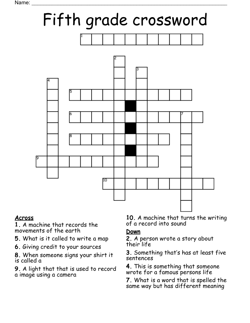 Crosswords For 5th Graders
