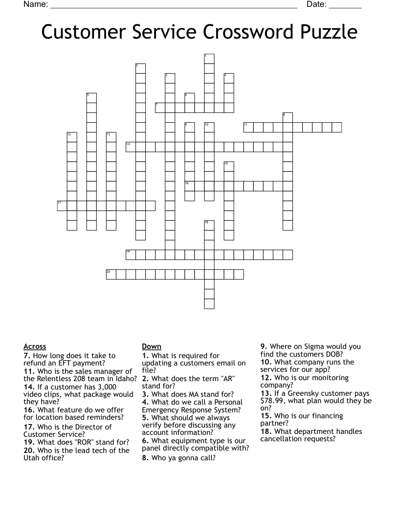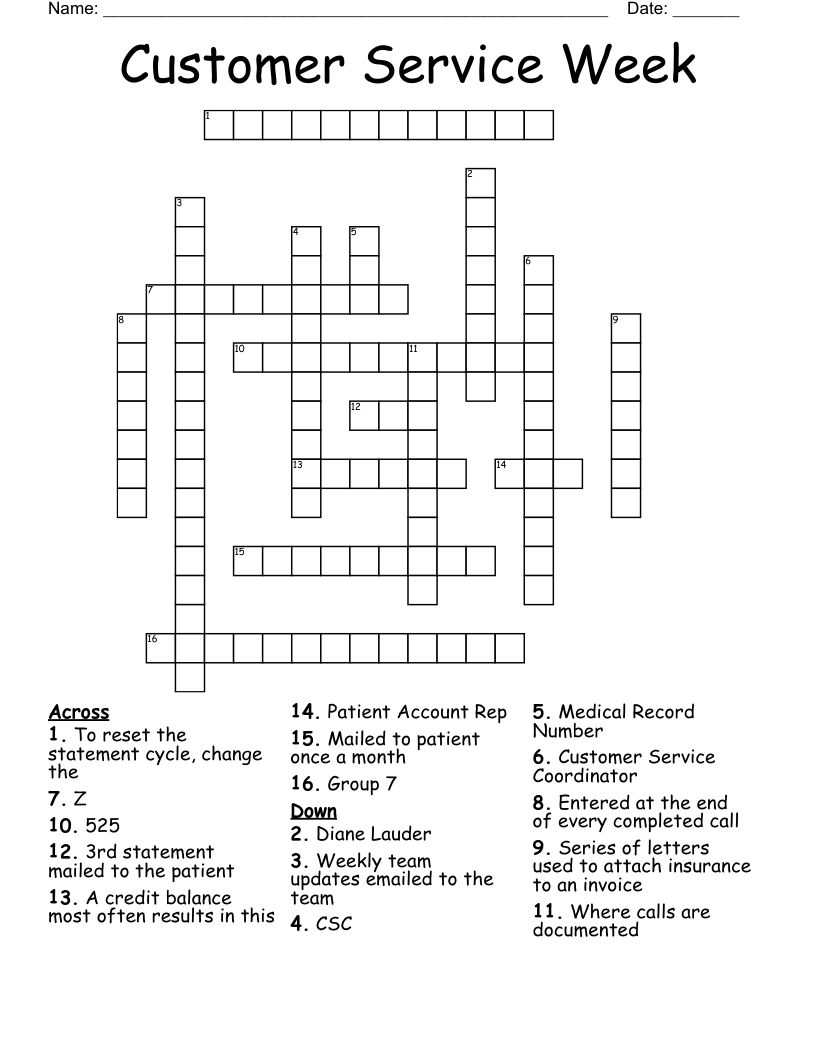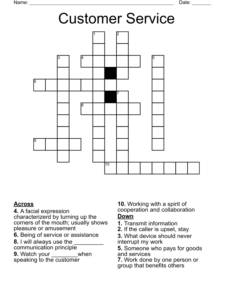 Customer Service Crossword Puzzles Printable