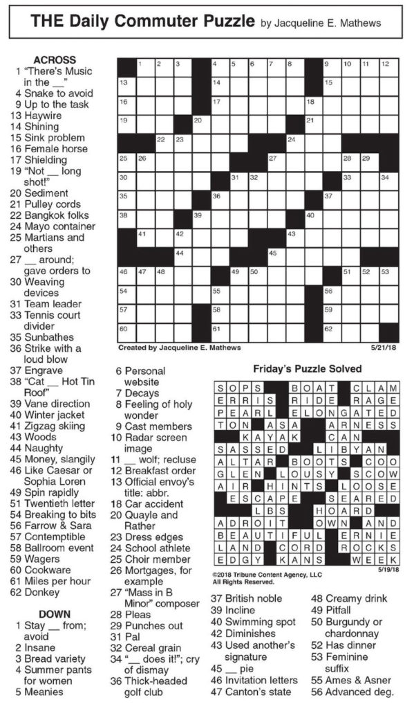 For many people, solving crossword puzzles is a favorite pastime that challenges their minds and keeps them entertained. If you’re looking for a daily crossword puzzle that will test your vocabulary and problem-solving skills, look no further than the Daily Commuter Crossword Puzzle by Jacqueline Mathews. This printable puzzle is perfect for commuters or anyone looking to exercise their brain on a daily basis.