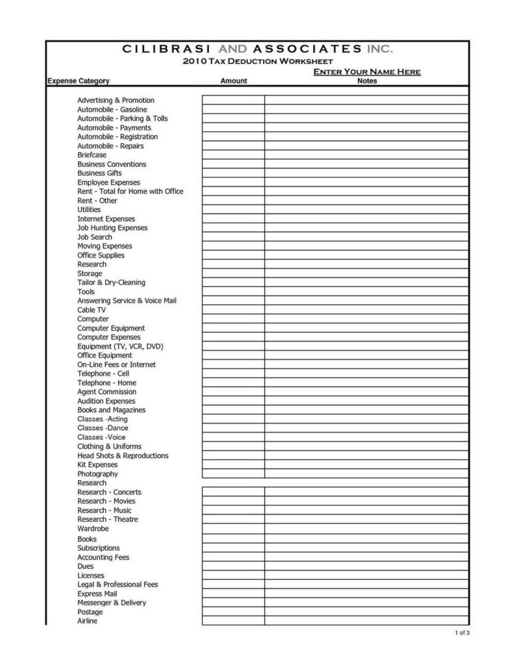 Tax Deductions Sheet Business Tax Deductions Personal Tax Tax Deductions Sheet Business Tax Deductions Personal Tax (worksheets.clipart-library.com)