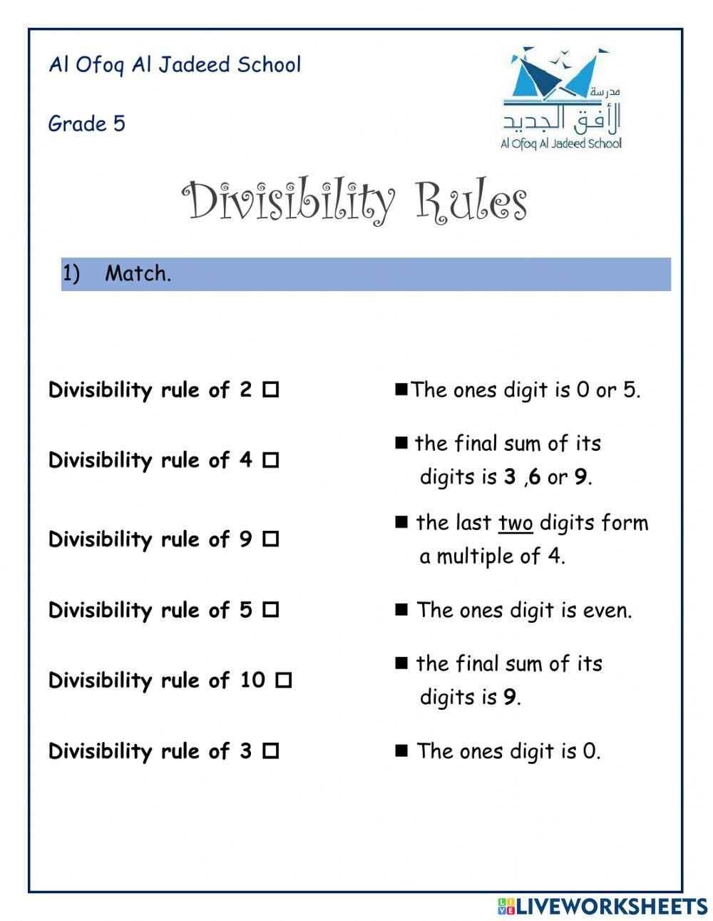 Divisibility Rules Amani Shams Live Worksheets Worksheets Library