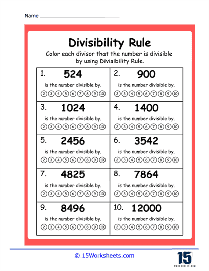 Divisibility Rules Worksheet