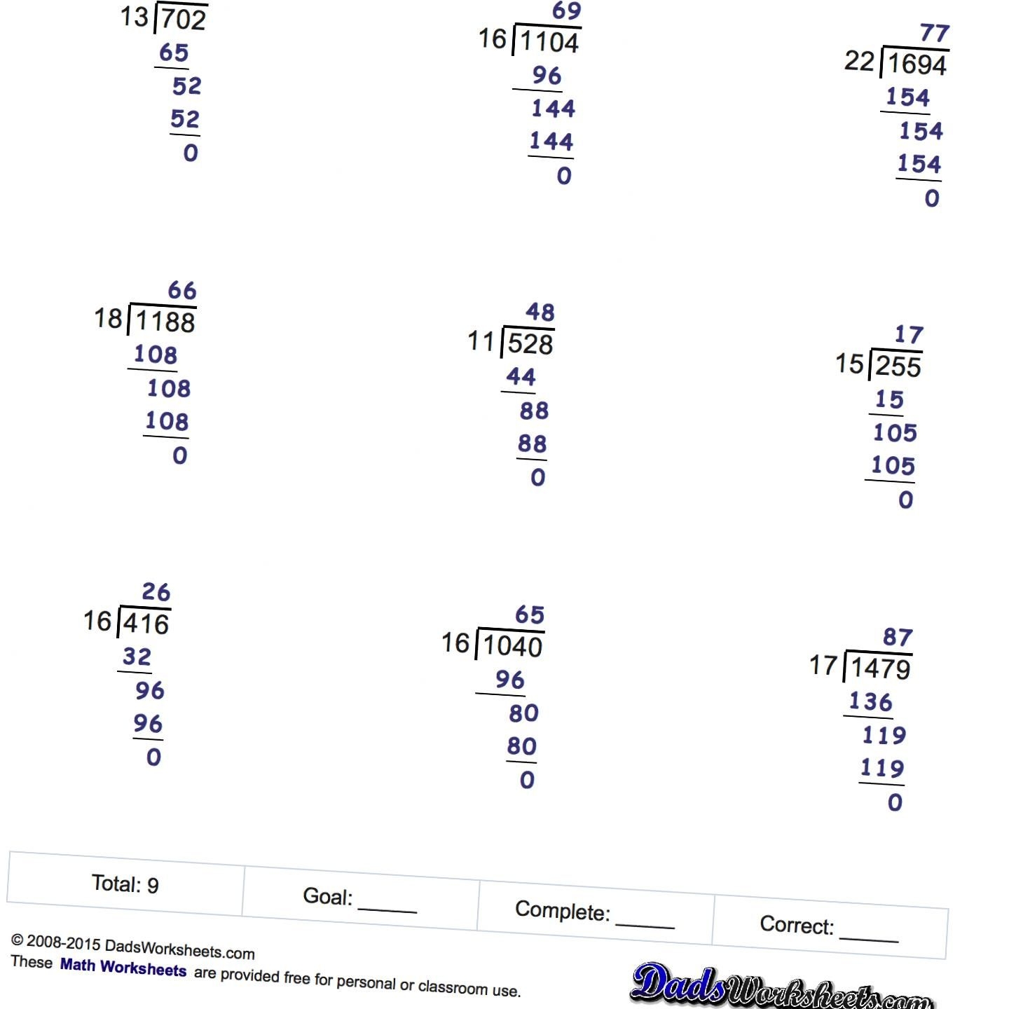 Long Division Worksheet Answer Key Long Division Worksheets