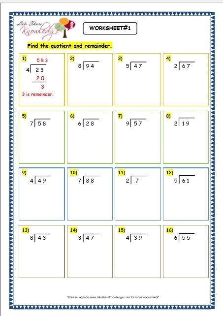 In conclusion, division worksheets for Grade 3 are valuable tools for students to practice and improve their division skills. By using these worksheets, students can strengthen their understanding of division concepts, develop their problem-solving abilities, and build a solid foundation for future math learning.