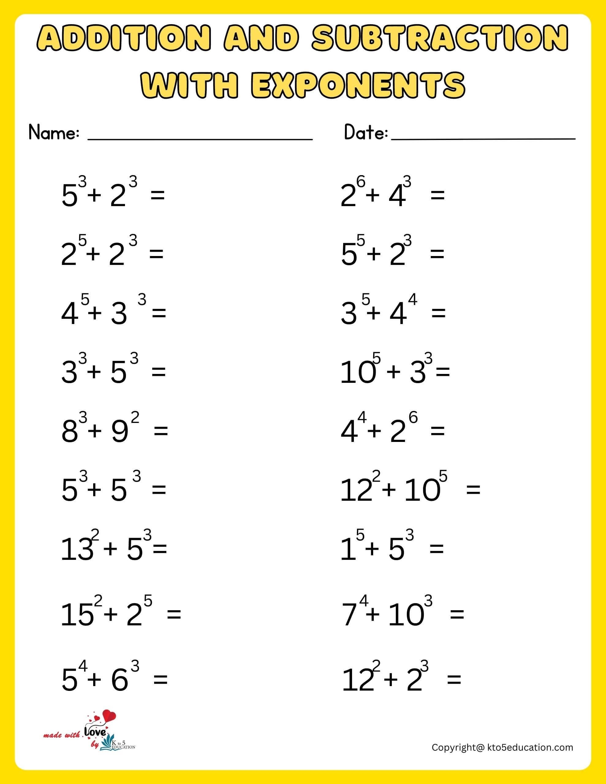Exponents Worksheets