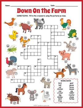 Farm Crossword Puzzle Printable