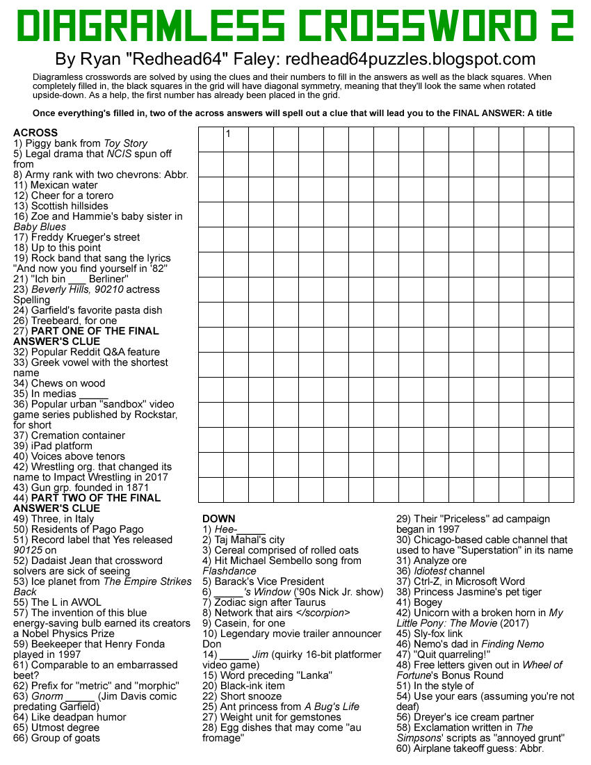 Crossword puzzles have been a popular pastime for many years, providing entertainment and mental stimulation for people of all ages. One variation of the traditional crossword puzzle is the diagramless crossword, which adds an extra level of challenge by omitting the black squares that typically separate the words. This unique twist on the classic puzzle format requires solvers to rely solely on the clues and their own knowledge to fill in the grid.
