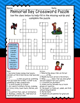 Memorial Day Crossword Puzzles By Made By Ms A TPTMemorial Day Crossword Puzzles By Made By Ms A TPT (www.teacherspayteachers.com)