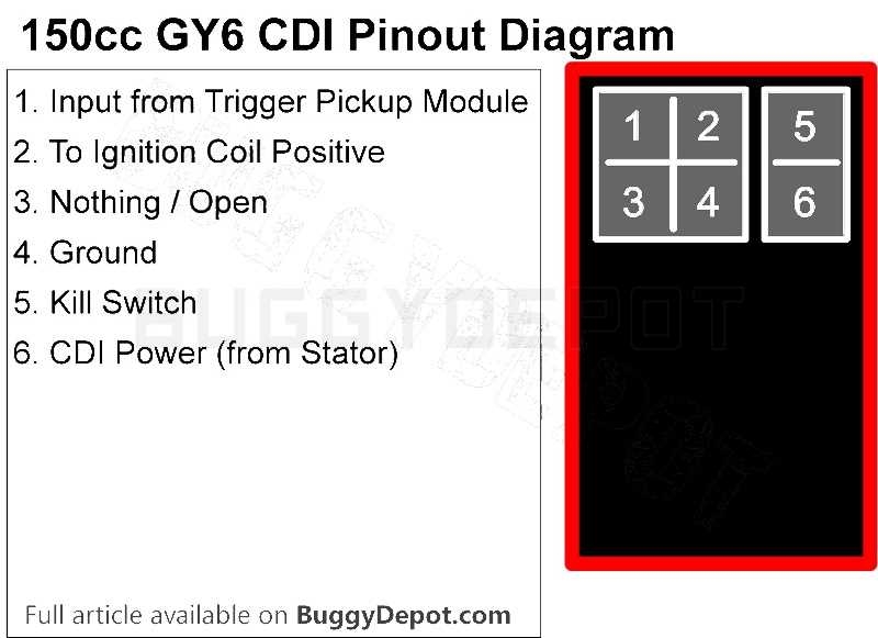 One of the key components of the ignition system in a Gy6 150cc scooter is the CDI (Capacitor Discharge Ignition) unit. This unit plays a crucial role in controlling the ignition timing and ensuring that the engine runs smoothly. Understanding how the CDI wiring is connected to the ignition switch is essential for proper functioning of the scooter.