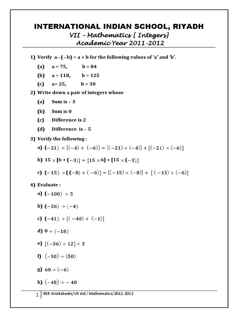CBSE Class 7 Maths Worksheet Integers PDF Nature Worksheets LibraryCBSE Class 7 Maths Worksheet Integers PDF Nature Worksheets Library