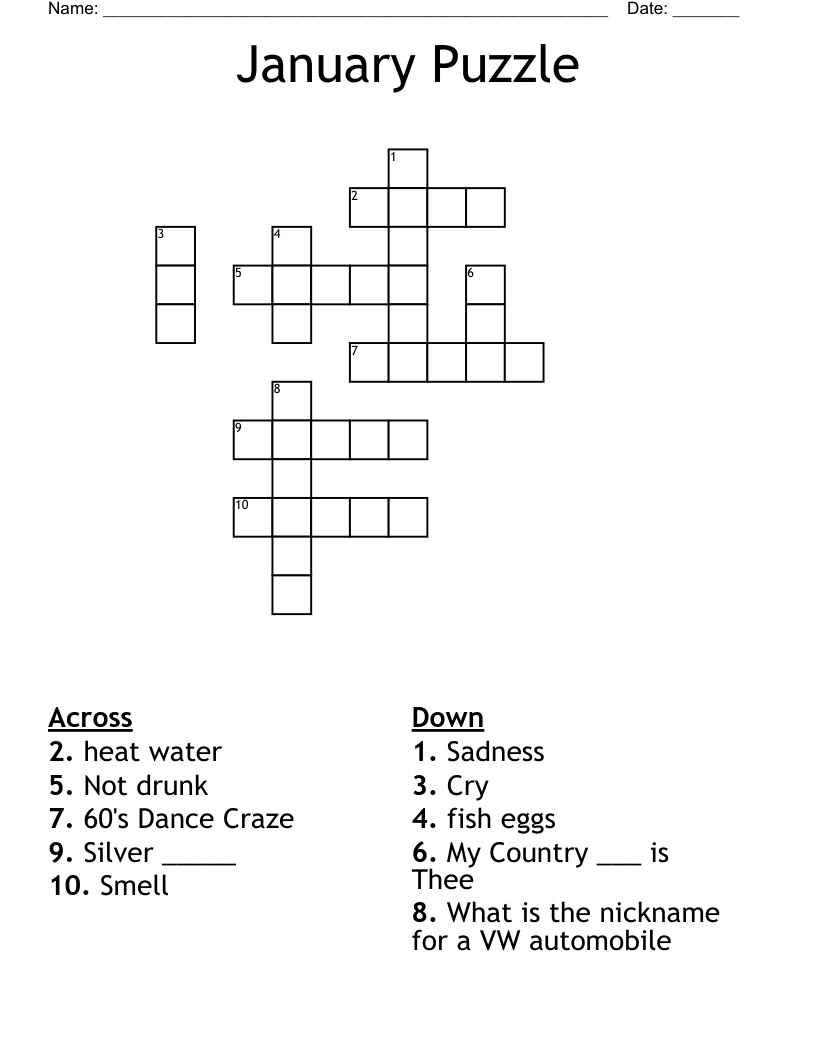January Puzzle Crossword WordMint (wordmint.com)