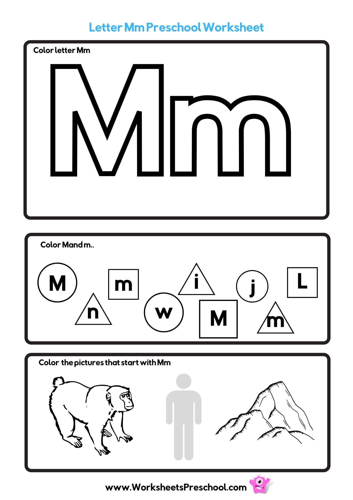 Additionally, letter M worksheets may include coloring activities. Children can color pictures of objects that start with the letter M, such as a mouse or a moon. This not only helps them practice recognizing the letter M but also enhances their creativity and fine motor skills.