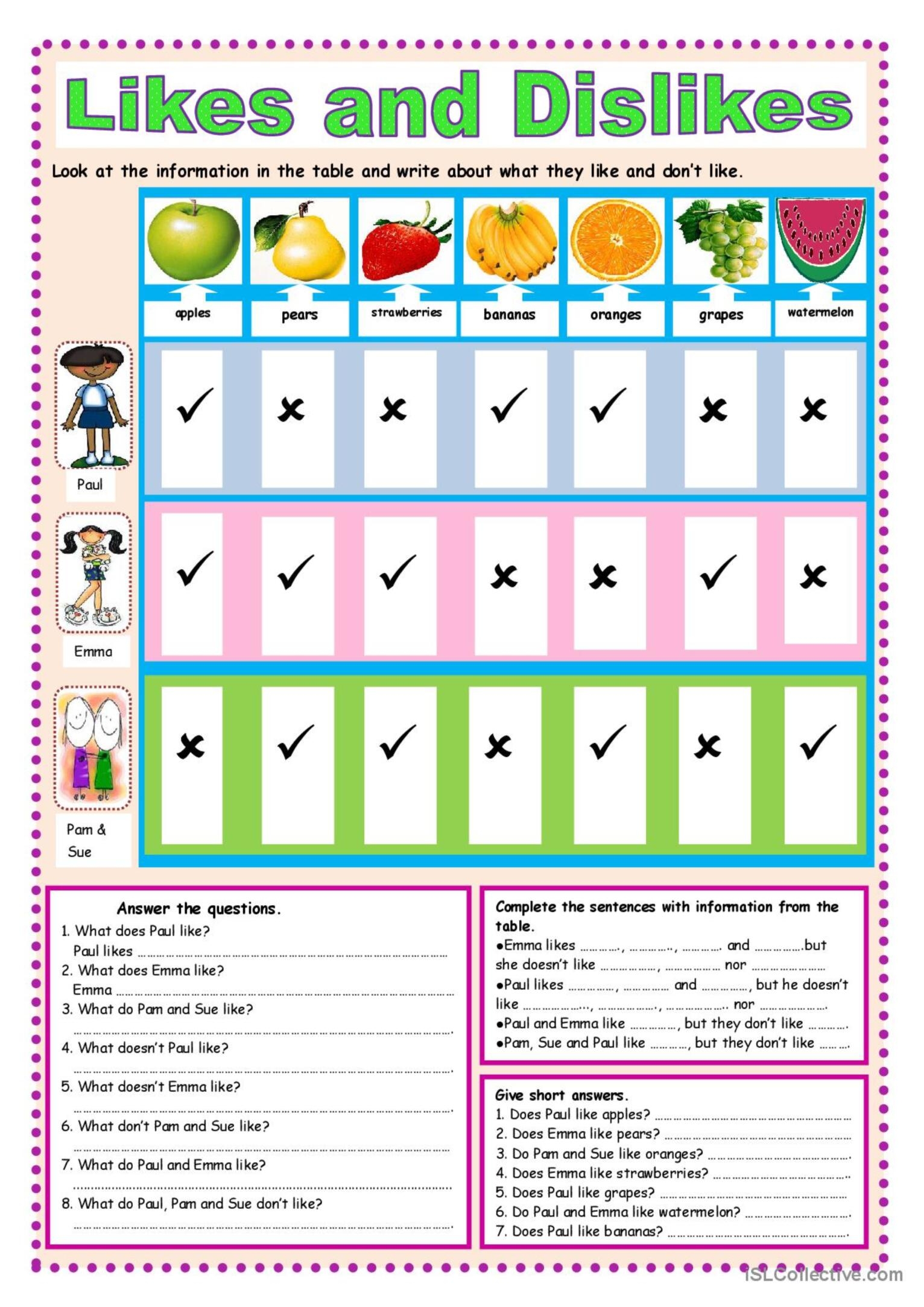 In the digital world, Likes And Dislikes Worksheets aren’t just paper-based. Many are now interactive PDFs or Google Sheets, allowing students and professionals to learn online. This versatility makes worksheets useful not only in education but also in offices, where data tracking and goal setting often require clear formats.