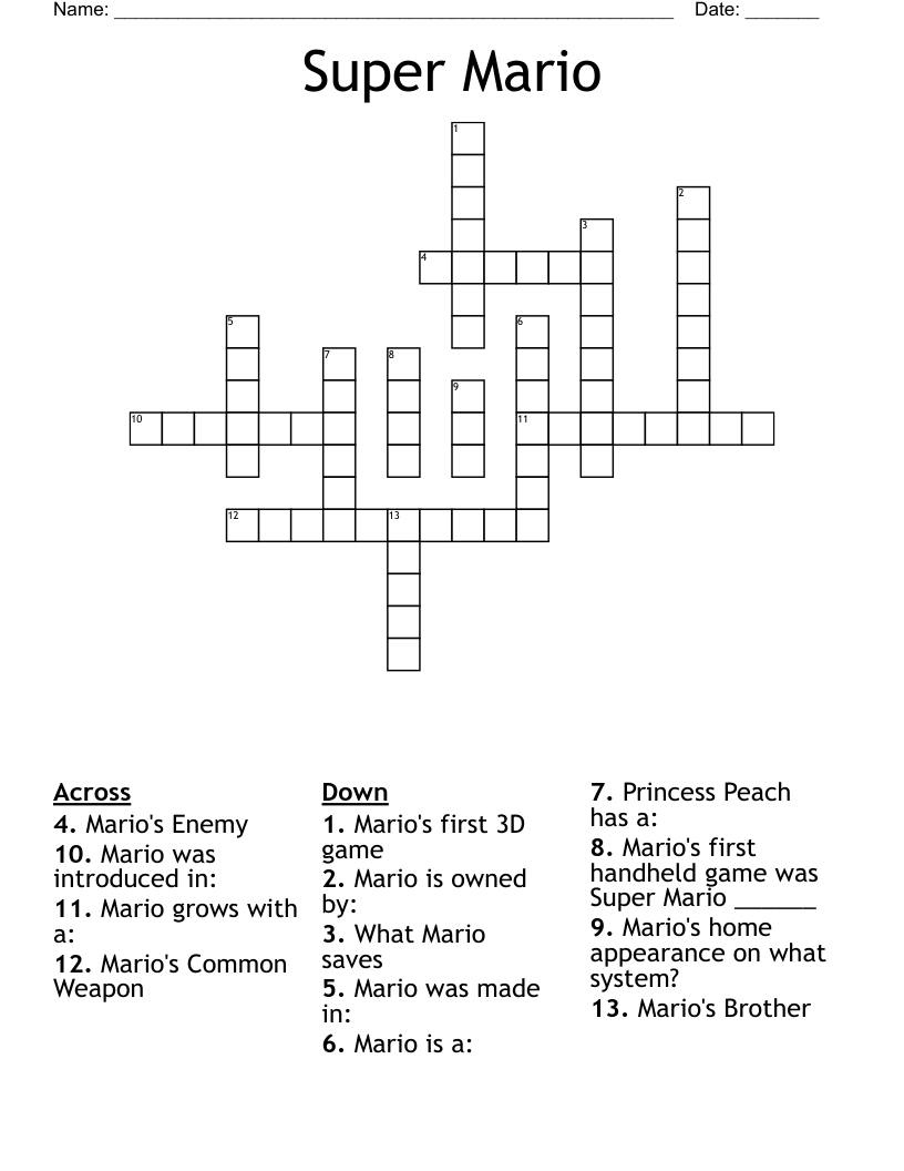 Are you a fan of Mario games and puzzles? If so, you’re in for a treat with our Mario Crossword Printable! This fun and challenging crossword puzzle features characters, items, and locations from the beloved Mario franchise. Whether you’re a seasoned gamer or just enjoy a good brain teaser, this printable is sure to provide hours of entertainment.