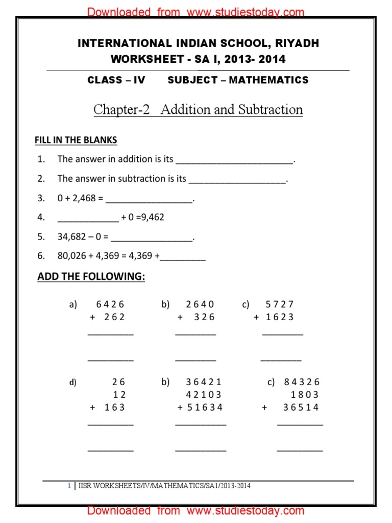 CBSE Class 4 Maths Printable Worksheet In PDF Worksheets Library