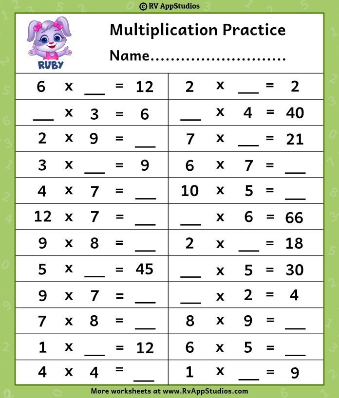 One of the fundamental skills in mathematics is multiplication. It is essential for children to understand the concept of multiplication and be able to quickly recall multiplication facts. Multiplication practice worksheets are a great tool to help students develop their multiplication skills and improve their overall math proficiency.