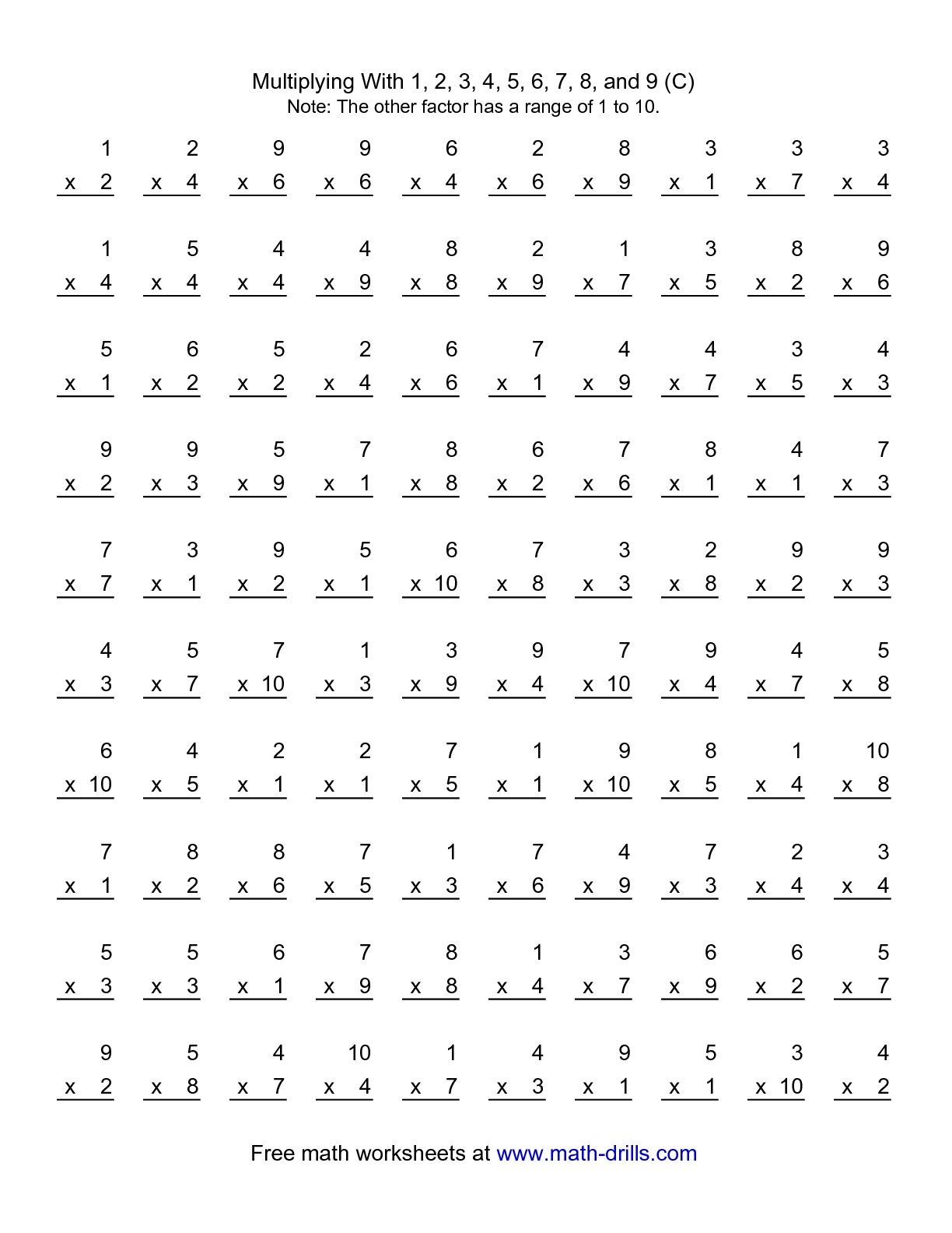 Download and Print Multiplication Practice Worksheets Listed below