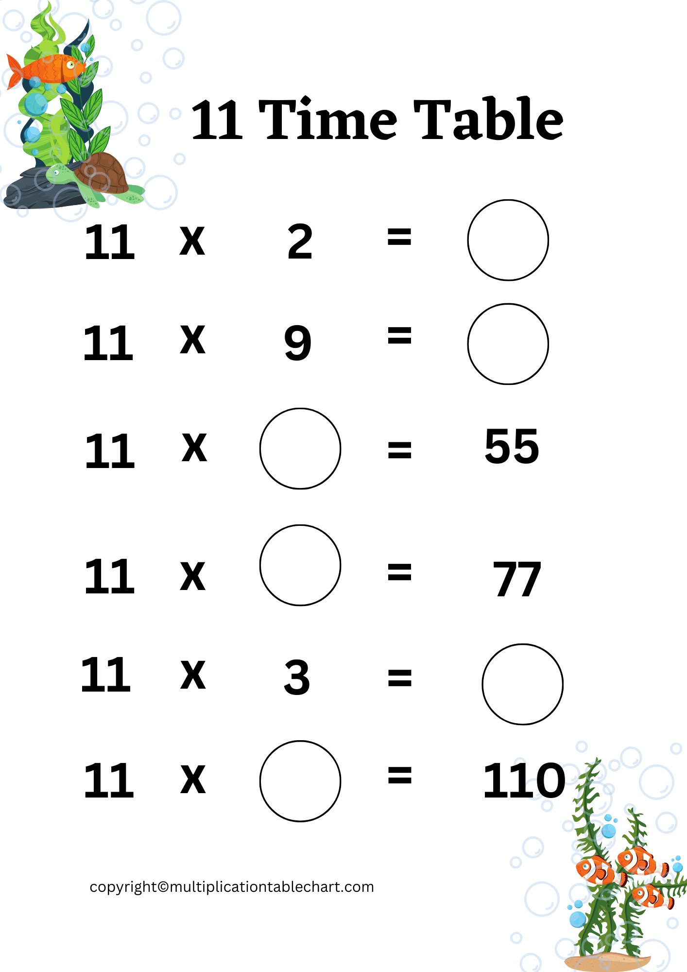 11 Times Table Worksheet 11 Multiplication Table Free PDF (multiplicationtablechart.com)