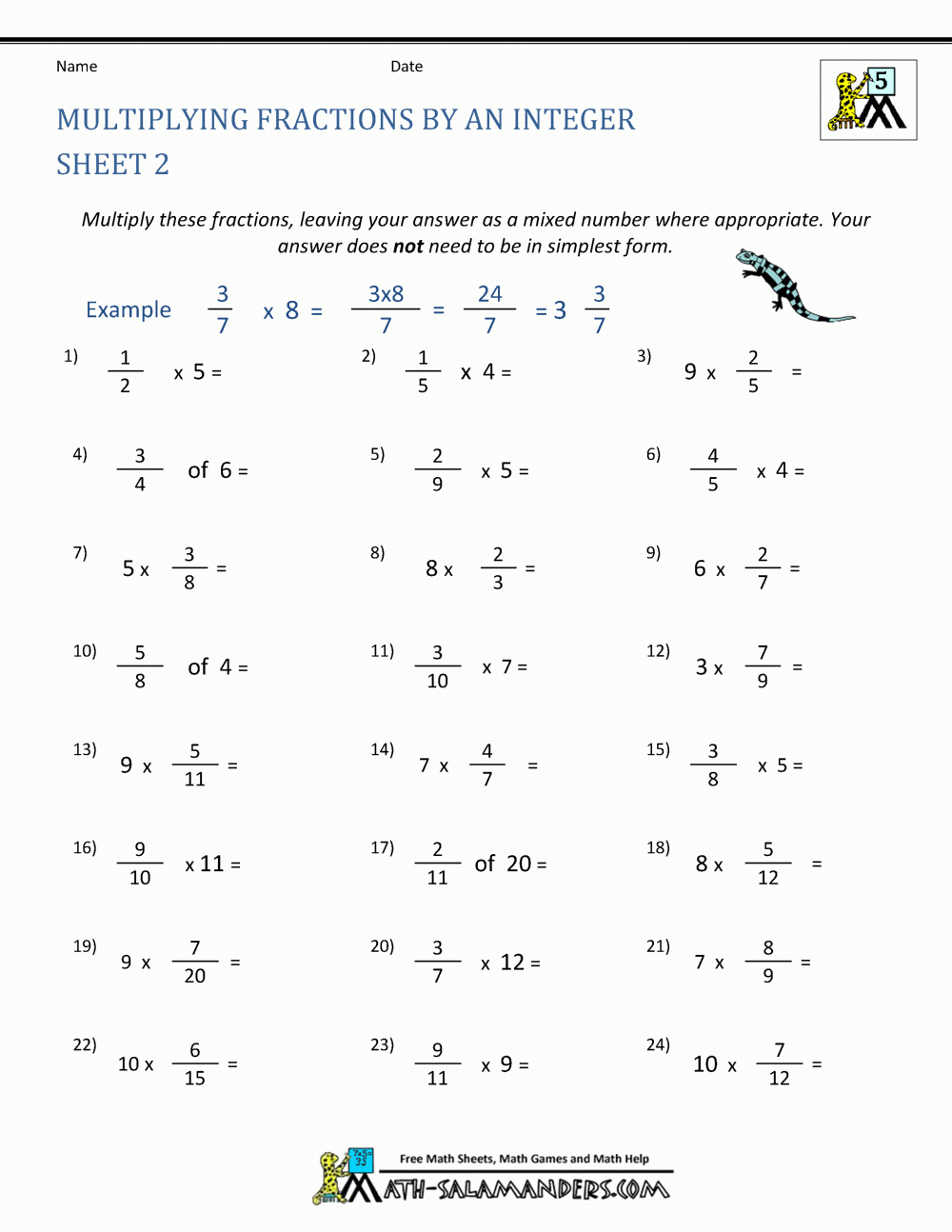 Multiplying Fractions Worksheet (www.math-salamanders.com)