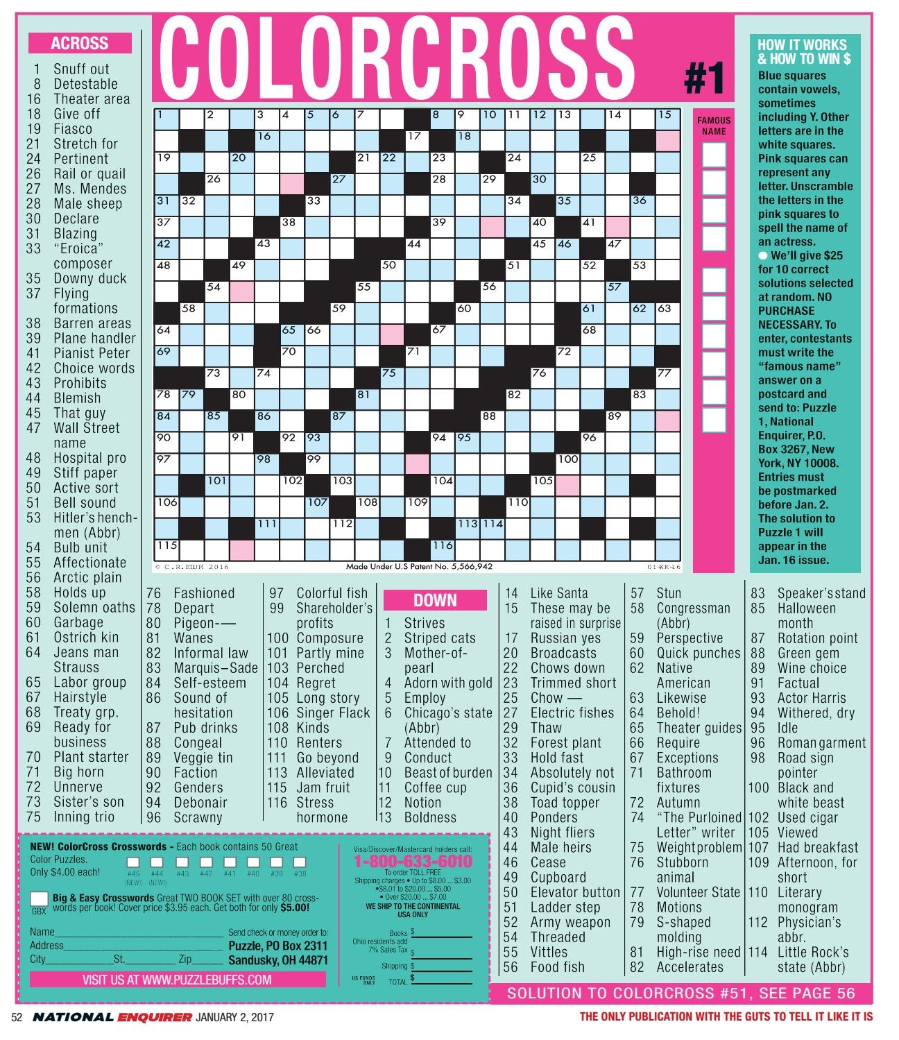 Download and Print National Enquirer Crossword Puzzles Printable Listed below