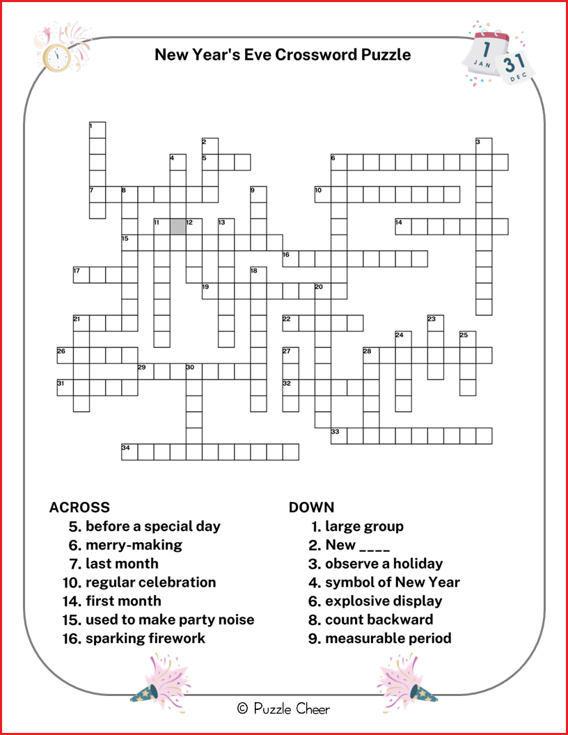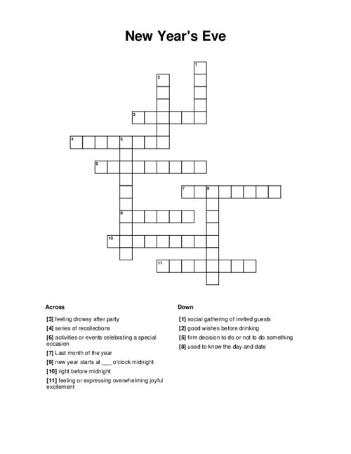 Creating a New Year’s Eve crossword puzzle is easy and fun. You can find printable templates online or design your own using a crossword puzzle maker. Include a mix of easy and challenging clues to cater to different skill levels. You can also add a personal touch by including inside jokes or references that are meaningful to your guests.