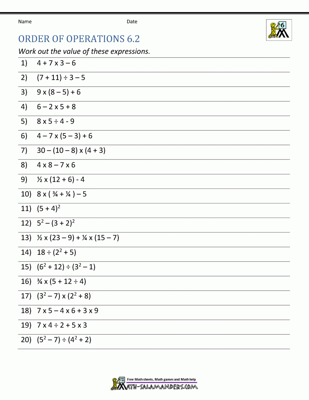 Order Of Operations Worksheets Worksheets Library (worksheets.clipart-library.com)