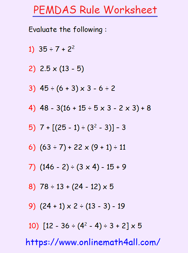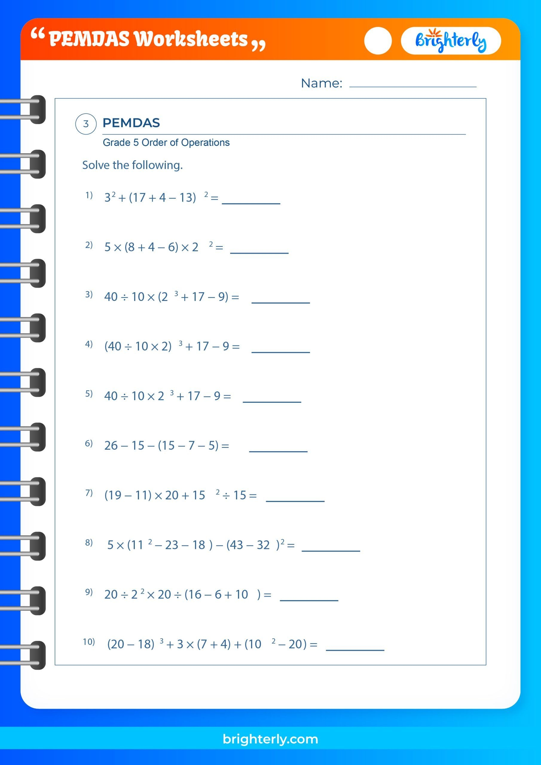 PEMDAS, which stands for Parentheses, Exponents, Multiplication and Division (from left to right), and Addition and Subtraction (from left to right), is a common acronym used to remember the order of operations in math. Pemdas worksheets are an effective tool for students to practice and master this important concept.