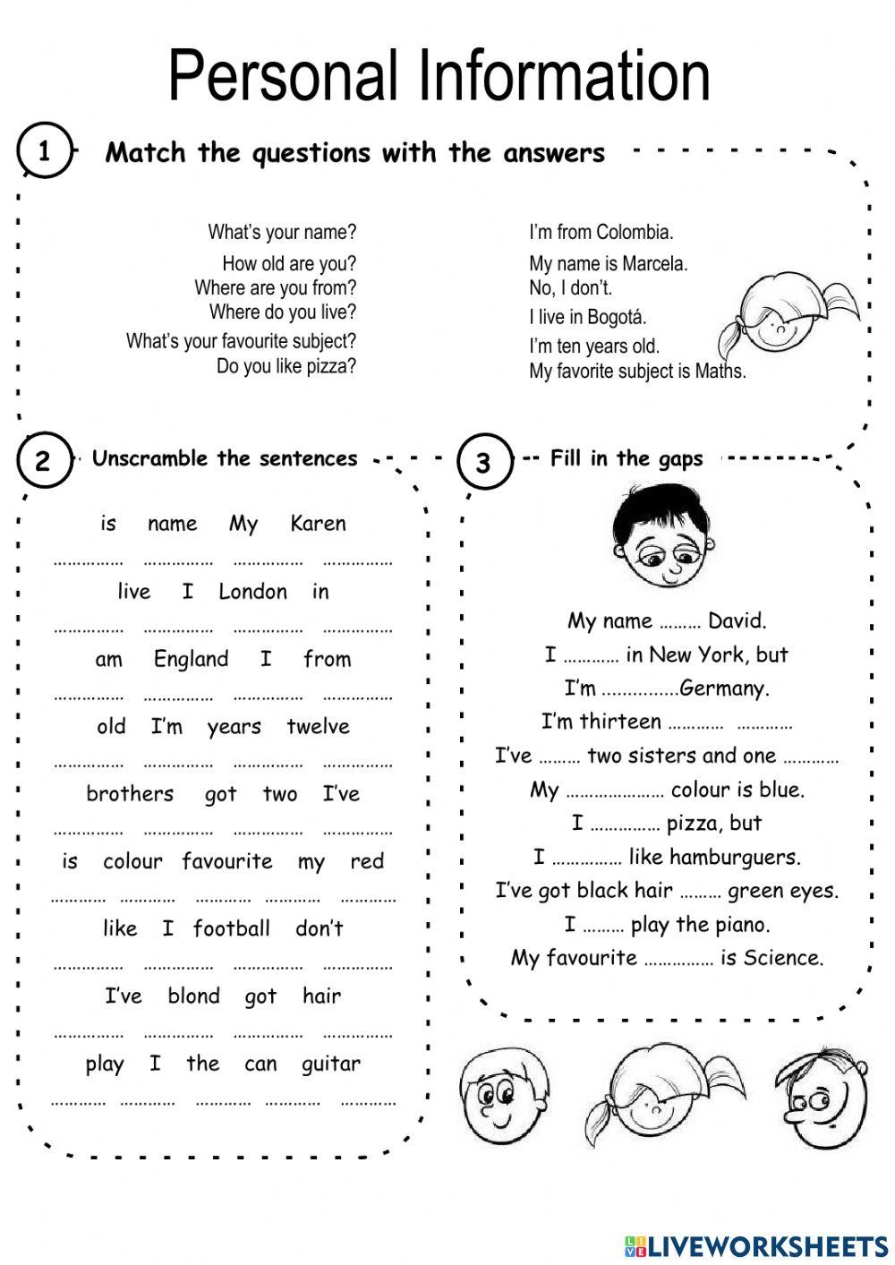 Personal Information Online Exercise For ELEMENTARY KIDS ESL