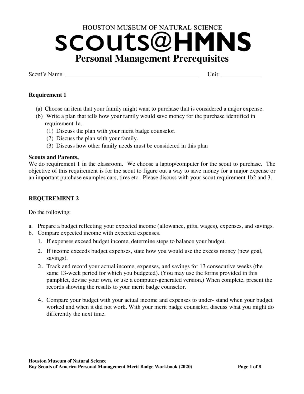 Personal Management Merit Badge Boy Scouts Of America Worksheets (worksheets.clipart-library.com)