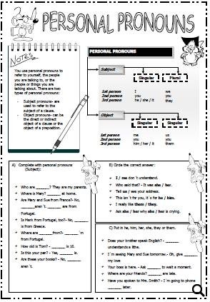 Download and Print Personal Pronouns Worksheet Listed below