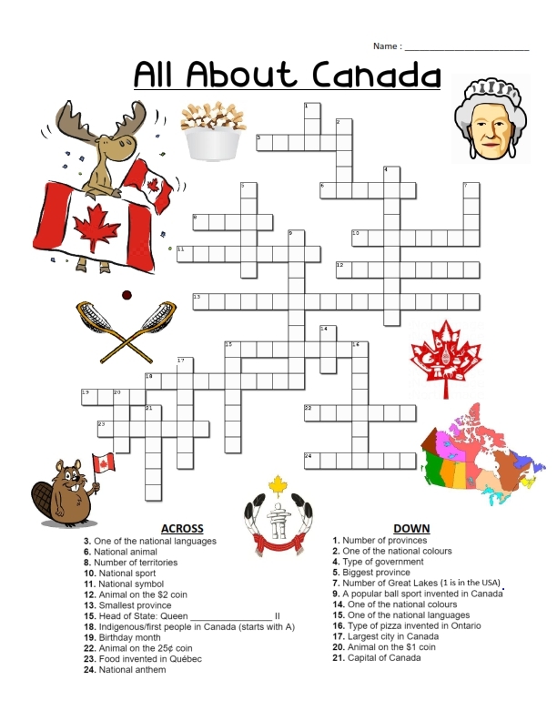 Printable Canadian Crossword Puzzles