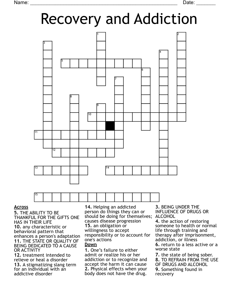 Recovery Crossword Puzzles Printable