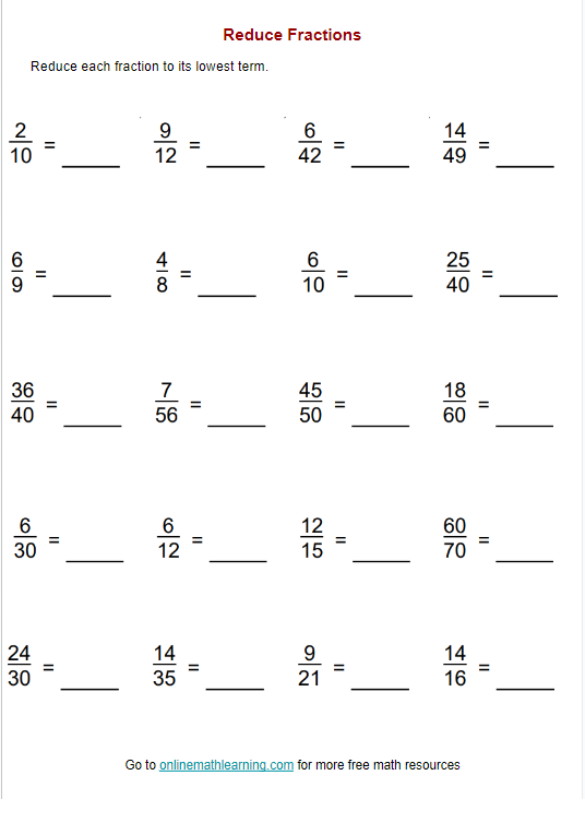 Reducing fractions is an important skill in mathematics that involves simplifying a fraction to its lowest terms. This process is essential for various math operations, such as adding, subtracting, multiplying, and dividing fractions. To help students practice and master this skill, teachers often provide reducing fractions worksheets as part of their curriculum.
