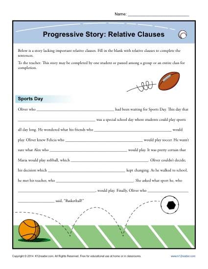 Progressive Story Relative Clauses Grammar Worksheets