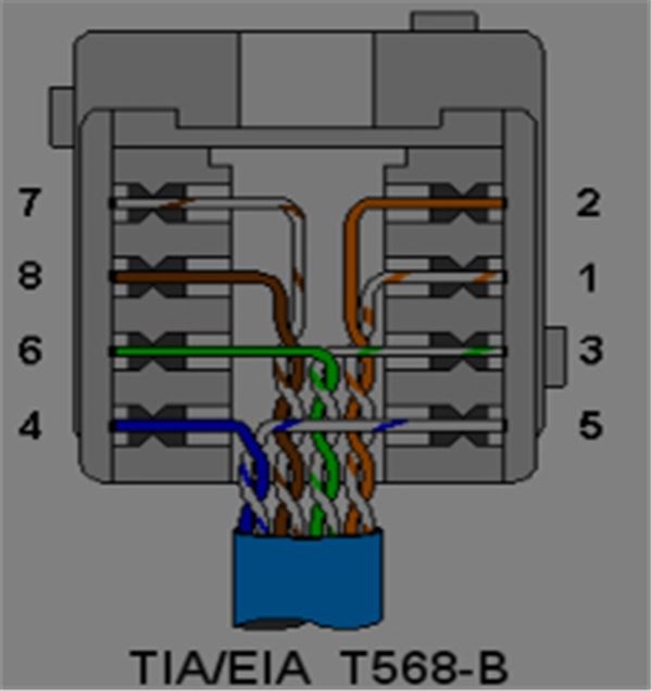 To wire an RJ45 connector using the T-568B standard, the wires are arranged in the following order: white/orange, orange, white/green, blue, white/blue, green, white/brown, brown. By following this wiring diagram and carefully connecting each wire to the corresponding pin of the RJ45 connector, you can ensure a reliable network connection.