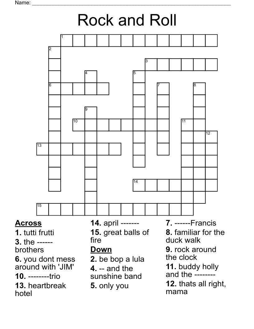 Rock And Roll Crossword Puzzles Printable