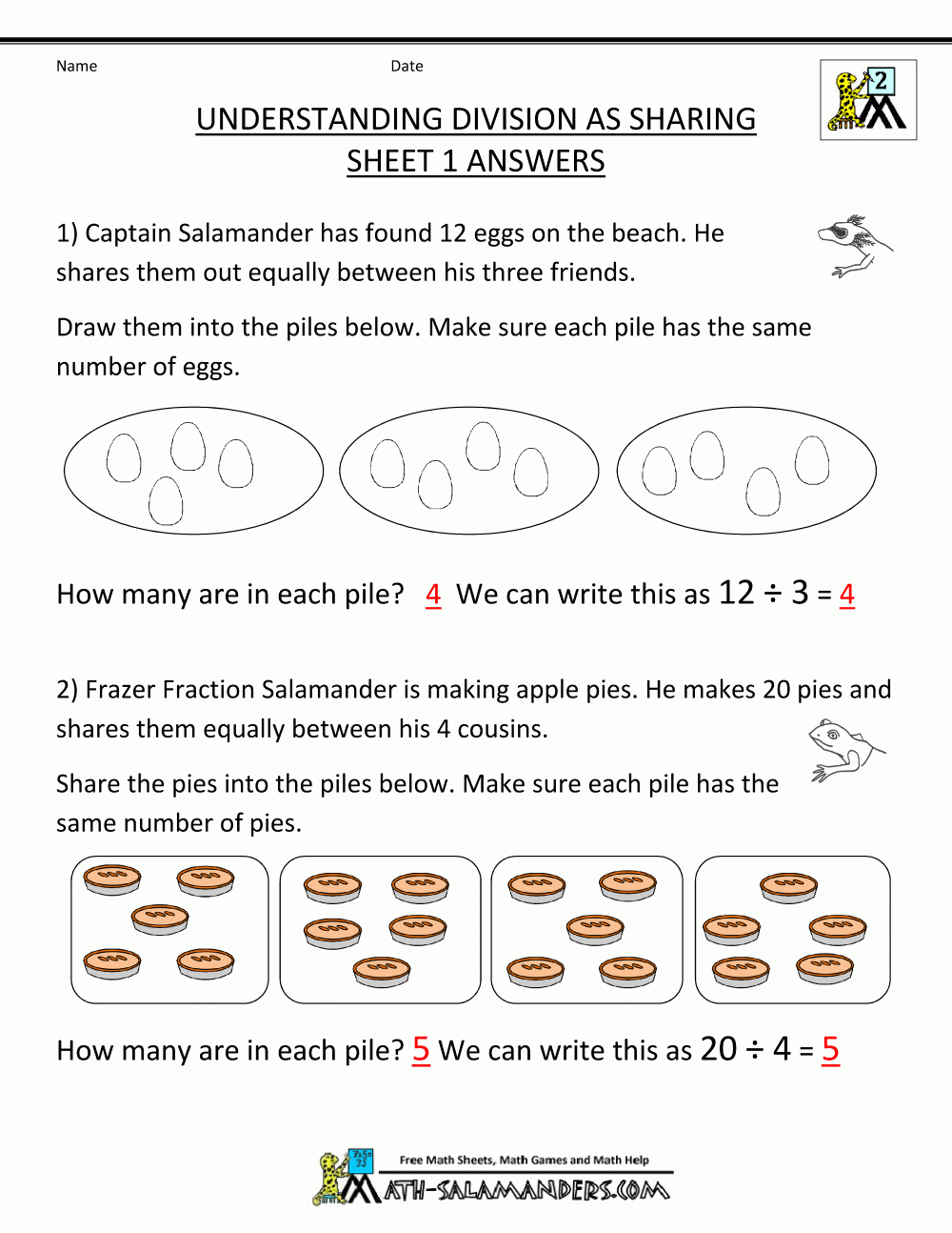Second Grade Division Worksheets (www.math-salamanders.com)
